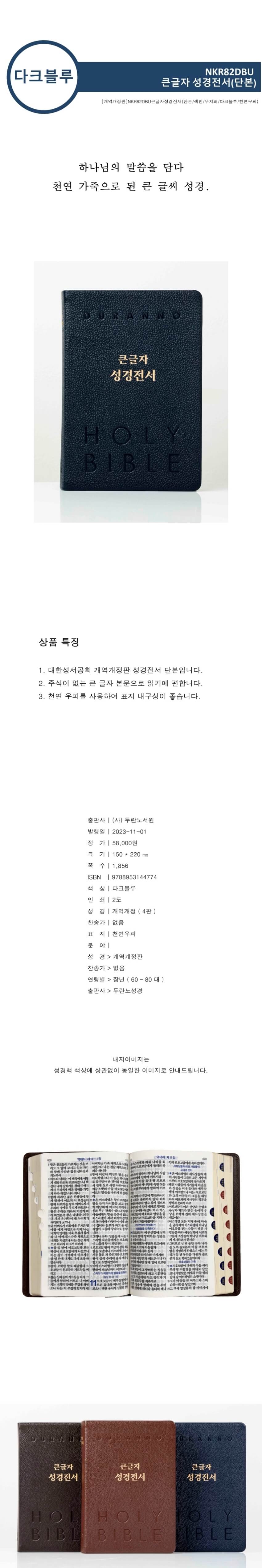개역개정4판 큰글자 성경전서 (대단본/색인/무지퍼/NKR82DBU/가죽(우피)/다크블루)