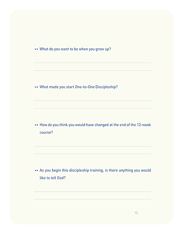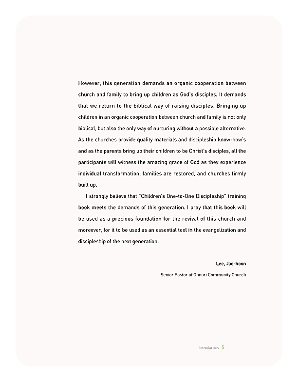 "한 영혼을 예수님의 제자"로 만드는데 사용되고 있는 《어린이 일대일 제자양육》 교재의 영문판이다. 부모(교사 혹은 양육자)와