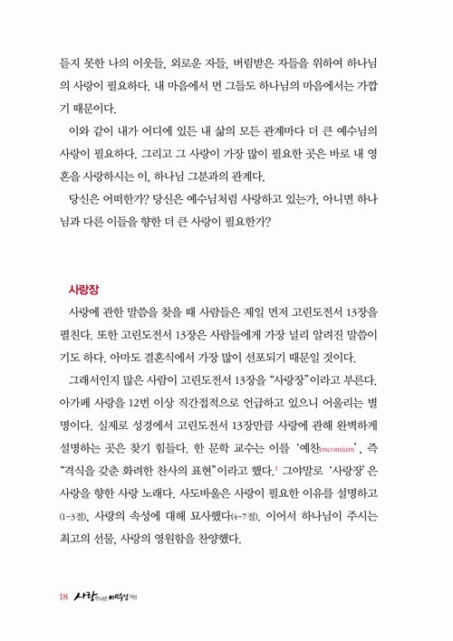 고린도전서 13장의 진수를 경험하게 하는 책
