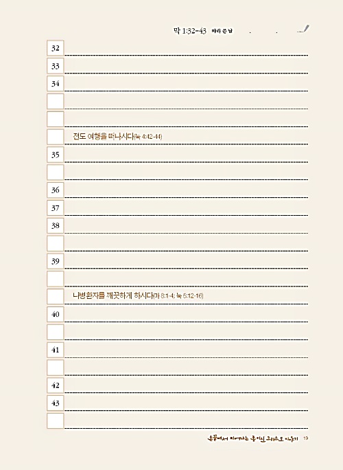 마가복음을 따라 쓰면서 주님의 발자취를 따라 사는 자인 성도들은 주님을 본받기 위해 섬김을 받는 자리가 아니라 섬기되 자신의 목숨까지 내려 놓은 섬김의 자리로 인도받게 될 것이다. 누가복음을 따라 쓰면서, 주님이 이 땅에 오신 참 목적이 무엇인지를 재확인하고 주님의 일이 우리의 사명임을 자각하며 이 땅의 잃어버린 자를 찾아 구원하는 일에 재헌신하게 될 것이다.