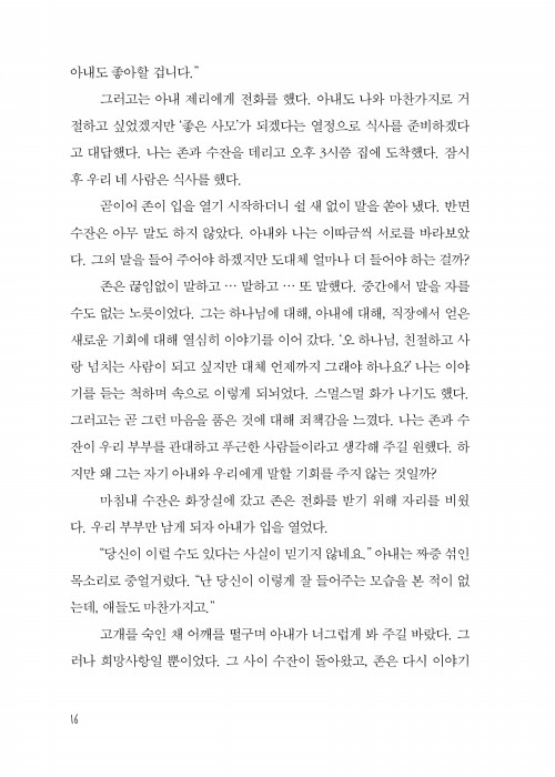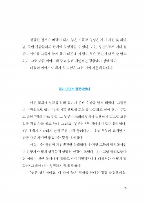 나 자신의 정서적 건강의 현 위치를 보게 해주었다. 때론 힘들었지만 반드시 필요한 작업이었다. 우리 스태프들과 함께 읽으면서 더 성숙한 ‘정서적 어른’이 되려고 한다. 아주 실제적인 책이었다.