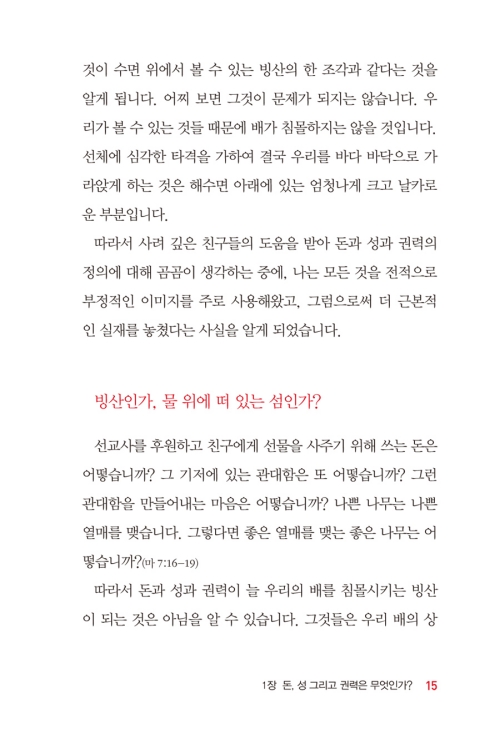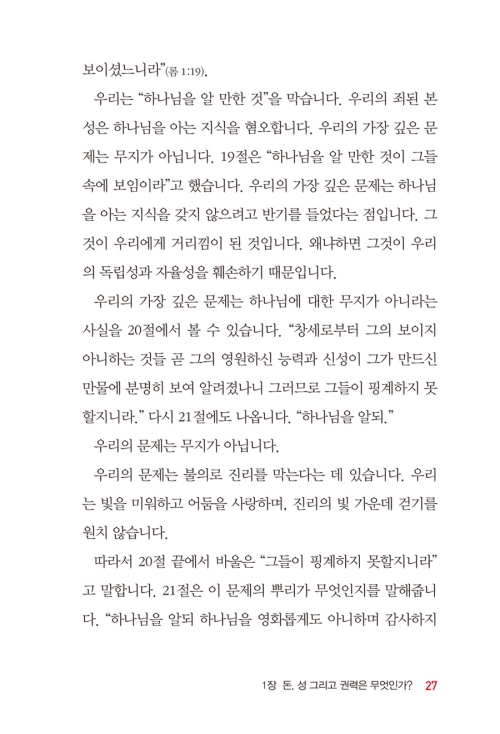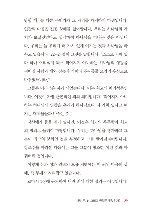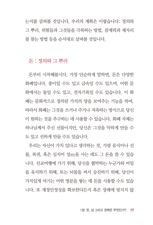 1. <돈과 성과 권력>의 문제를 막연히 거절하거나 흠모하는 태도에서 벗어나, <돈과 성과 권력>의 올바른 이해를 필요로 하는 목회자와 평신도(교회 제자훈련 추천도서)