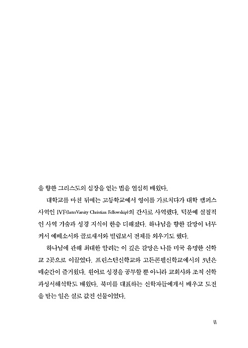 특히, 신앙과 리더로서의 역할과 관련해서 나는 죽은 것만 같았다. 하지만 처음에는 죽음처럼 느껴지던 이 경험이 사실은 하나님과의 새로운 관계를 여는 긴 여정의 시작이었다. 그것은 우리의 삶, 결혼생활, 가정, 교회, 나아가 세상의 수많은 교회들이 변하게 되는 출발점이었다. 나는 기독교 신앙 자체가 문제가 아니라 우리가 제자로 훈련을 받고 제자를 키워 온 방식이 문제임을 발견했다.