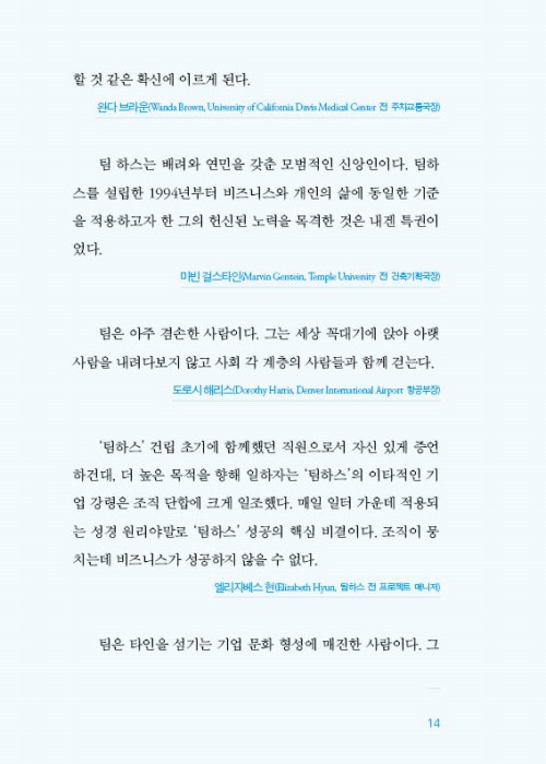 팀 하스의 이야기를 듣고 있자면 우리 또한 선한 영향력을 미치는 삶을 살아 내야 할 것 같은 확신에 이르게 된다.