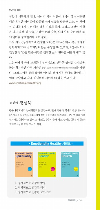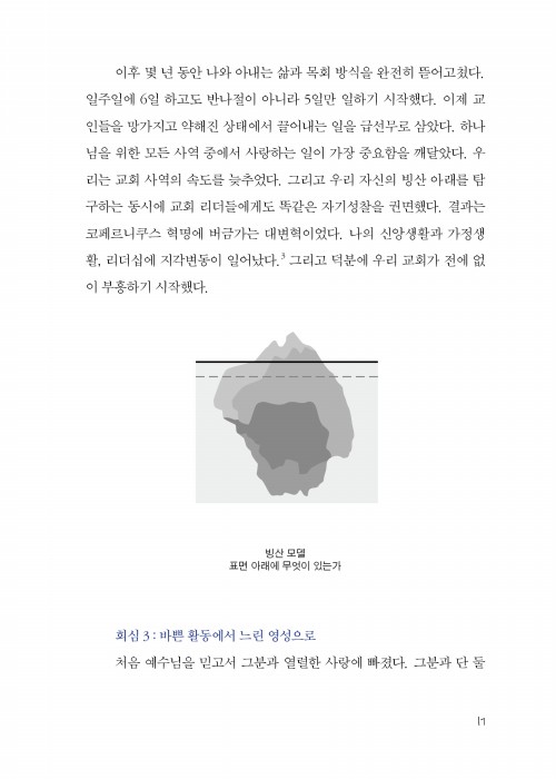 리더들이 하나님 안에 거할 수 있도록 자신의 삶을 재배치하도록 도와주는 이 책이, 한국교회에 큰 시사점을 줄 것으로 기대한다. 빙산의 일각처럼 숨겨진 리더들의 내면이 하나님의 변화의 손길에 닿을 때, 정서적으로 건강한 리더들로 회복될 것이기 때문이다.