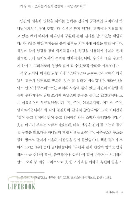 풍부한 실례를 들어 가며 성경읽기의 중요성과 올바른 방법을 제안하는 저자의 열정이 느껴지는 책입니다. 친절한 어조로 차근차근하