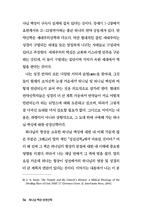 ESBT 시리즈의 첫 권은 이어지는 책의 기초를 다지면서, 성전, 왕, 제사장, 창조, 구속