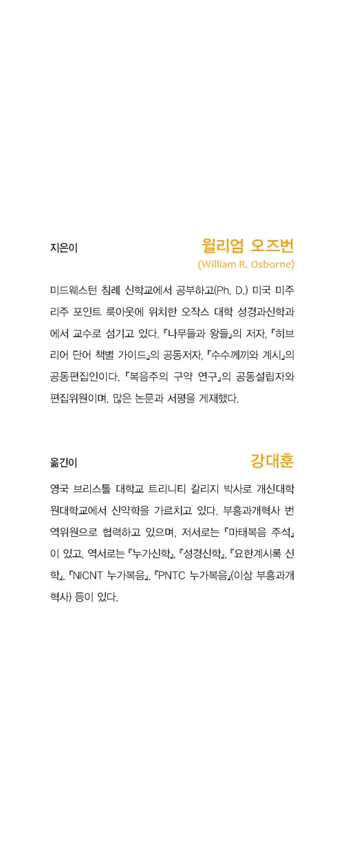“윌리엄 오즈번은 창세기부터 요한계시록까지 복의 성경신학을 면밀히 검토한다. 이 연구는 수준 높고 학문적이면서도 자신의 백성에게 복을 주기 원하시는 하나님의 계획을 진지하게 이해하고 배우기 원하는 사람은 누구든지 이해할 수 있다. 하나님이 자신의 백성을 위해 주시는 현재의 복과 미래의 약속된 복에 나타난 ‘이미/그러나 아직’의 속성을 깊이 이해하기 위한 필독서다.”
