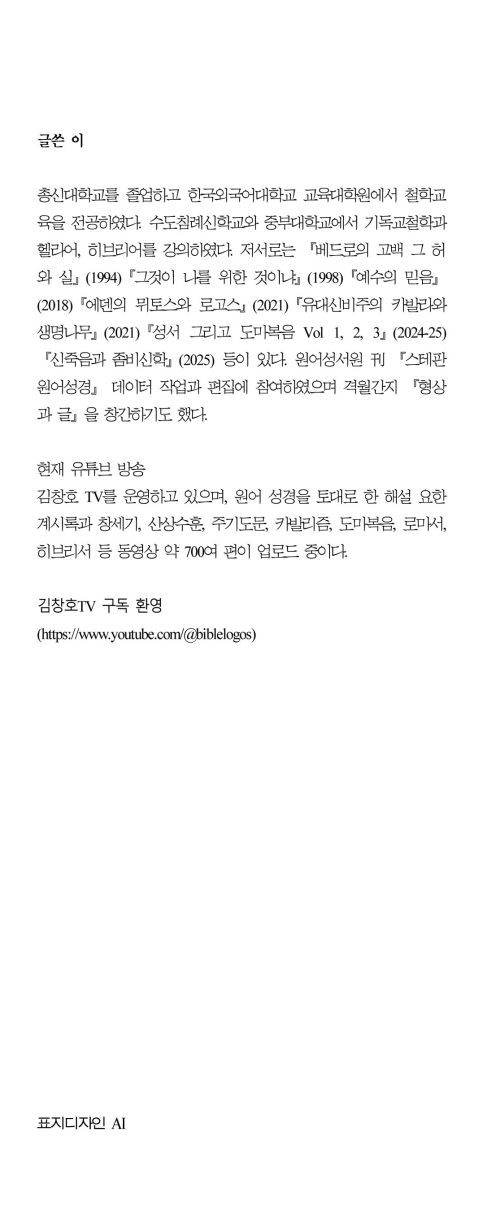 본서는 도마복음 71–114의 해설서다. 1권(1–28), 2권(29–70)에 이은 3권(71–114)으로, 도마복음 로기온에 해석을 덧붙였다. 철저히 초월신의 관점, ‘좀비 신학’의 관점에서 읽는 방식을 거부한다. 우리 각자 안에서 성취되어야 할 ‘신성 언약’의 관점에서 텍스트를 바라보고 읽기를 시도하며 주석하였다. 그 점에서 한 치의 혼돈이 없다. 신을 말하되 ‘좀비 신학’의 초월신이 아니다. 왕국을 말하되 우주 종말론의 교리적 관점이 아니다. 도래하지 않은 가상 세계를 전제하는 것은, 자신도 모르는 것을 교리화해 사람들의 영혼을 혼미케 하고 현혹하는 자기기만이요 종교적 사기 행각이기에 동의할 수 없다.