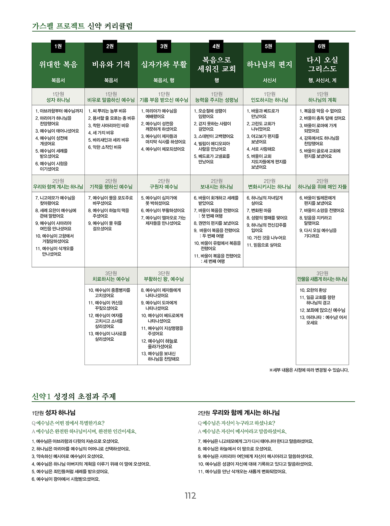 ▶ 교리 기반 교육단원별로 주어지는 성경의 초점은 교리문답 형식으로 신학적 주요 주제를 담았습니다.