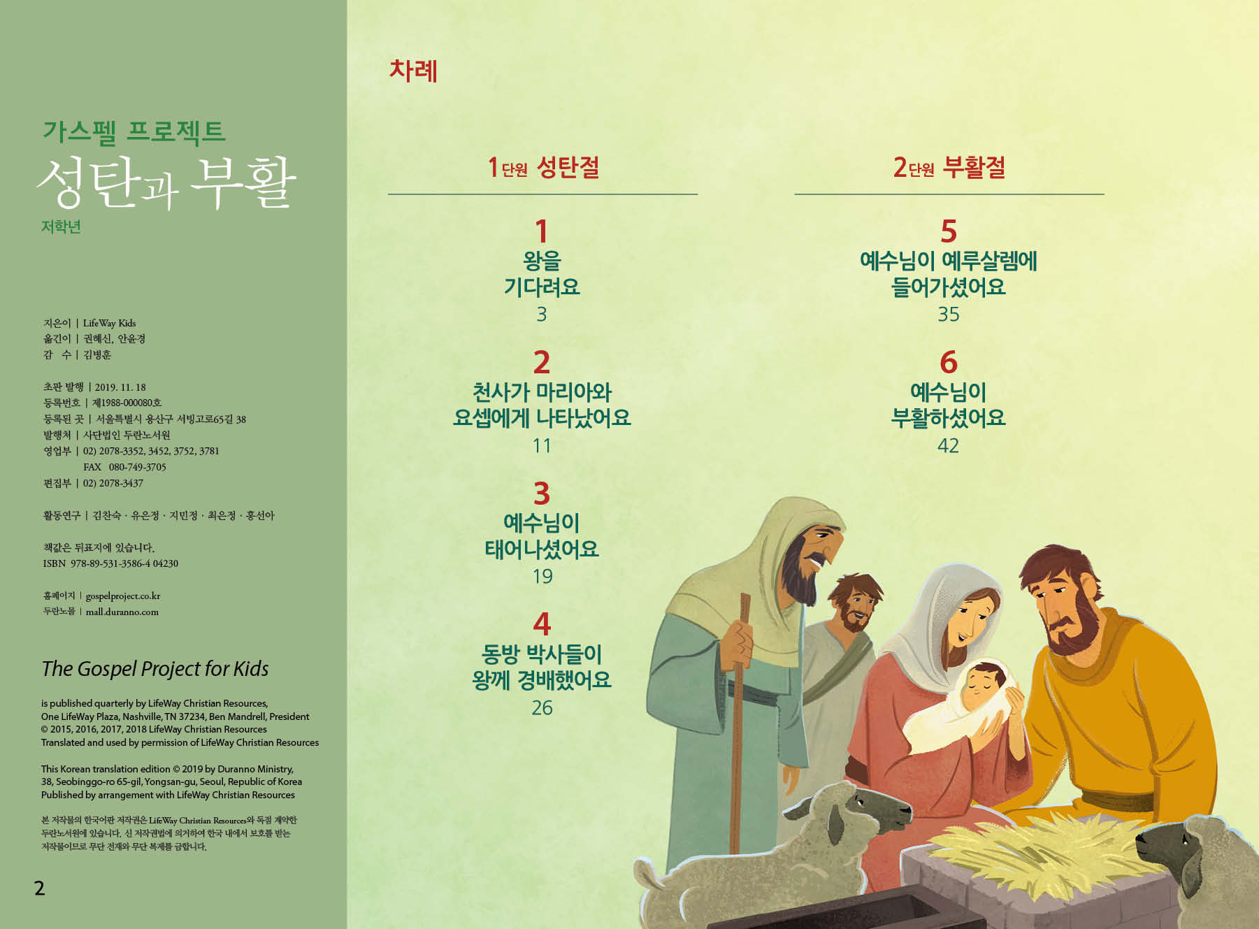 《가스펠 프로젝트_성탄과 부활》은 성탄절과 부활절 시기에 맞추어 사용하는 것이 좋다. 이 이 책에는 초등학생 저학년 어린이의 눈높이에 맞추어 게임과 퀴즈, 미술 놀이 등의 다양한 활동을 통해 성경의 핵심 메시지와 기본 교리를 익히며 성경 구절을 암송하고, 가정과 연계할 수 있도록 구성했다. 특히 모든 성경 이야기에서 예수님을 묵상하게 한다. 또한 마무리 단계에서 하나님께 마음을 고백하는 훈련을 하는데 이는 믿음을 피상적이지 않게 자신의 삶으로 적용하게 돕는다. 가족과 함께하는 활동이나 대화, 함께 읽는 성경 본문을 제시하여 복음적인 삶으로 연결하는 훈련을 할 수 있다. 가스펠 프로젝트 페이지(gospelproject.co.kr)에서 교사와 부모를 위한 다양한 자료를 제공한다.
