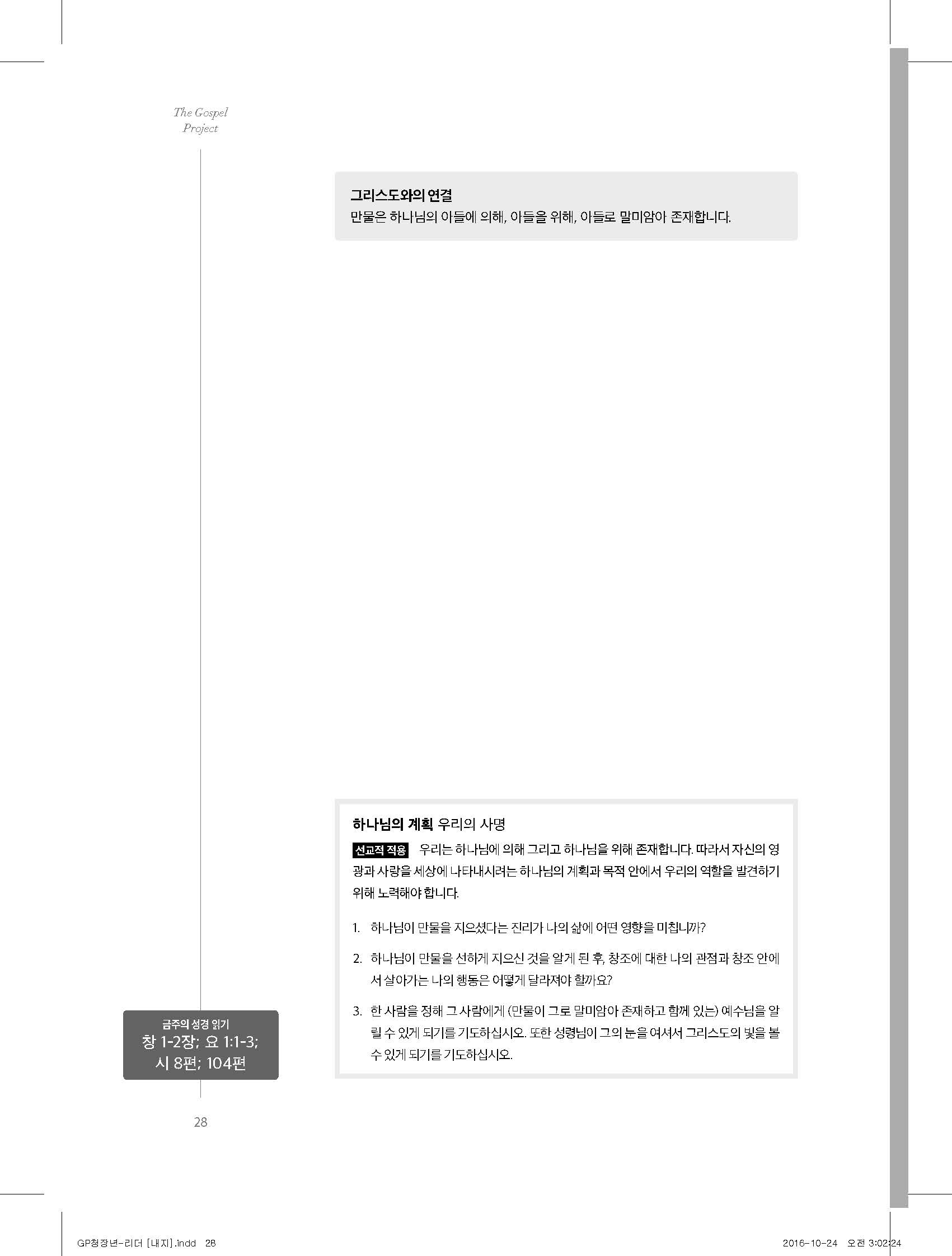 성경은 하나님의 말씀입니다. 말씀 중의 말씀, 복음은 예수 그리스도이십니다. 《가스펠 프로젝트》는 하나님의 말씀으로 우리를 초청해서 예수 그리스도를 만나게 하고 사랑하게 만드는 훌륭한 교재입니다. 가스펠 프로젝트의 매력은 하나의 커리큘럼을 가지고 연령대에 적합하게 공부하도록 제공한다는 점입니다. 자녀들이 교회 학교에서, 부모들이 소그룹에서 말씀을 공부한 후에 저녁 식탁에 둘러 앉아 예수님에 대해 함께 나눌 수 있다는 것은, 상상만 해도 너무나도 멋지고 복된 일입니다.