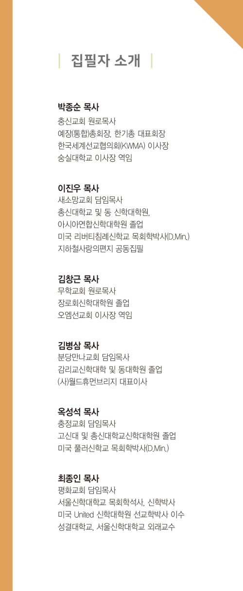 각 교단의 목회자들이 집필한 범교단적 구역예배 공과!