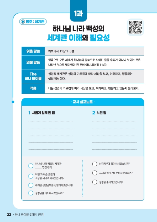 (상반기/합동공과) 하나바이블 : 유년부 1-1 (교사용)