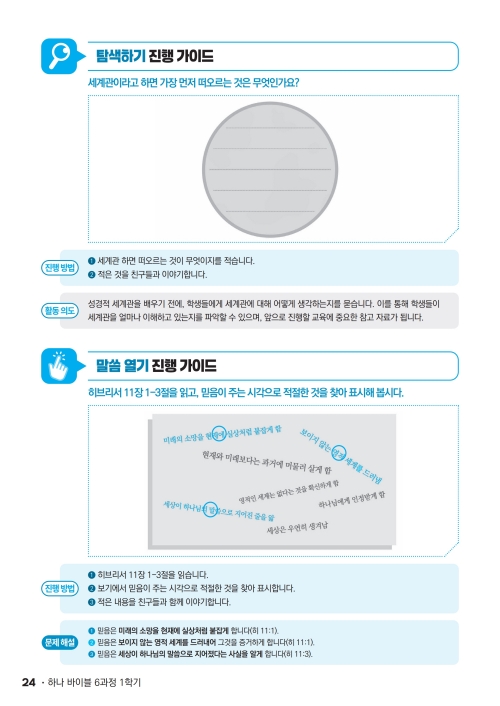 하나바이블 6-1 모든 부서의 지도자용은 고객이 직접 구입, 다운로드하여 사용하는 상품으로 변경되었습니다.