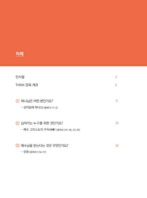 이 교재는 ‘하나님, 죄와 십자가, 믿음, 예배, 성경과 기도, 교회’라는 여섯 가지 핵심 주제를 다룹니다.