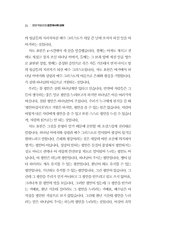 이 책은 일반 독자가 요한계시록을 읽어나갈 때 상당한 유익을 줍니다.