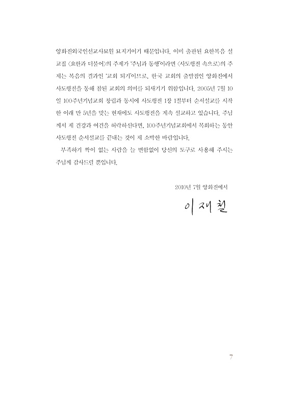 이 책은 100주년기념교회가 창립된 2005년 7월 10일부터 이재철 목사가 은퇴한 2018년 11월 18일까지 13년 4개월에 걸쳐 매 주일 행한 ‘사도행전 순서설교’의 마지막 권이다. 조기 은퇴에 대해 교인들에게 설명한 내용, 네 명의 후임 공동담임목사를 세우며 교회의 미래를 준비해 나간 내용이 포함되어 있다.