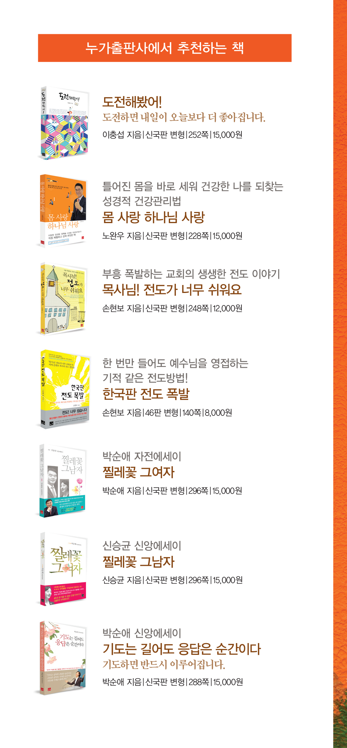 첫 설교집 『캄캄할 때 하늘이 열린다』로 얼마나 많은 사람들이 위로받고 실패의 자리에서, 특별히 가장 낮은 자리(감옥)에서 변화되고 힘을 얻어 일어났는지 모른다. 이번 설교집을 통하여서도 은혜를 사모하고 갈급해 하는 성도들이 더욱 많이 일어나기를 기대한다. 이번 설교집이 나올 수 있도록 최선을 다해 기도하고 축복해주신 원주 중부침례교회 성도님들께 감사를 드린다. 또한 설교집이 나올 수 있도록 드러나지 않는 섬김으로 재정의 도움을 주신 분들에게 깊은 감사를 드리며 마음 깊이 품고 최선을 다하여 축복하며 기도드린다. 모든 설교마다 교정을 도와준 이병묵 전도사님께 감사드리고, 마지막까지 교정을 위해 수고를 아끼지 않은 전지혜 자매에게도 감사드리며, 한 편의 설교 완성을 위해 몸부림칠 때마다 옆에서 묵묵히 기도로 도와준 사랑하는 아내 강성경 사모에게 무한한 감사를 드린다.