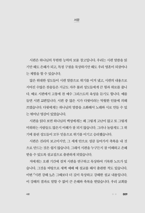 - 시편 본문을 누구라도 쉽게 이해할 수 있도록 강해하여, 일반 성도라도 가정예배나 소그룹 모임에서 함께 읽고 은혜를 나눌 수 있다.