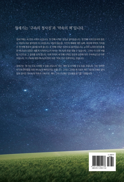 모세 오경의 시작으로서 창세기는 창조와 기원에 관하여 말씀하십니다. 천지와 만물의 기원, 사람의 기원, 가정의 기원, 죄의 기원, 예배의 기원, 인류의 기원에 관하여 알게 하십니다. 그러나 창세기는 단지 그 시작과 기원에 관한 말씀을 목적으로 하지 않습니다. 창세기는 구속의 청사진을 보여 주며 이것이 바로 약속입니다.