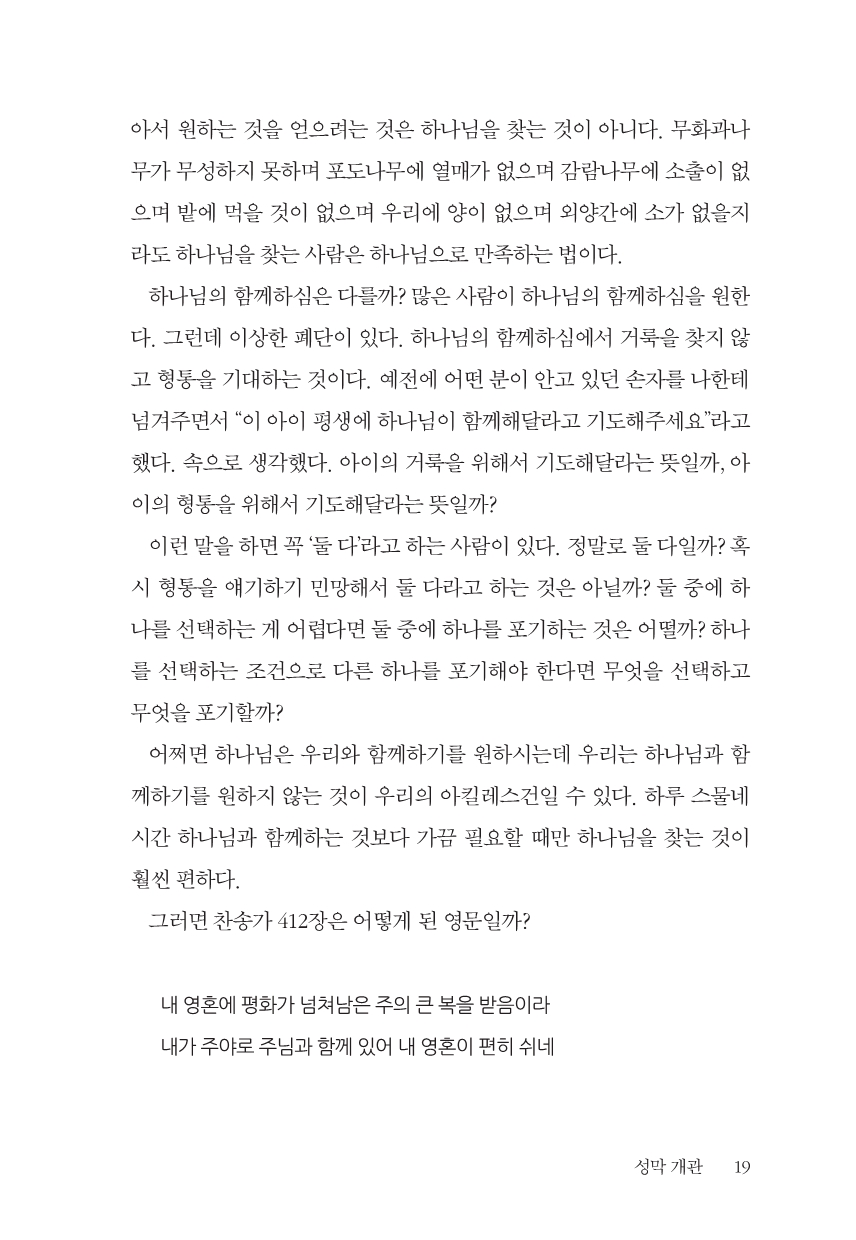 30년 가까이 지났습니다. 문득 문득 “아! 그게 아닌데 잘못 얘기했구나.” 싶은 대목들이 떠올랐습니다. “나의 가는 길을 오직 그가 아시나니 그가 나를 단련하신 후에는 내가 정금 같이 나오리라”라는 욥 23:10 말씀을 욥의 신앙고백으로 잘못 설명하기도 했고 (지금도 많은 사람이 오해하는 말씀입니다.) 언약궤를 옮기던 중에 웃사가 죽은 얘기도 잘못 설명했습니다. 흔히 언약궤에는 십계명 돌판과 만나 항아리, 아론의 싹 난 지팡이가 있었다고 하는데, 그에 대한 생각도 달라졌습니다. 성막을 강해하면서 대제사장 의복을 빠뜨린 것도 서운했습니다.