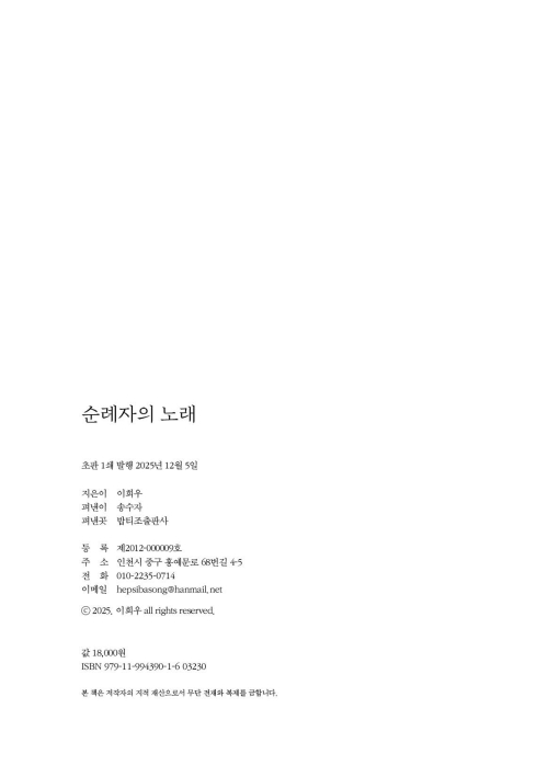 시편을 가까이할 때 우리는 체험적인 신앙의 맛을 경험하게 될 것입니다. 시편에 관한 책들이 많지만, 이 가운데 균형 있는 시각으로 깊이를 보여주는 책 한 권을 기꺼이 추천합니다. 바로 이희우 목사님이 쓰신 『순례자의 노래』입니다. 이 책은 시편 중에서도 특별한 여정을 담고 있는 ‘성전에 올라가는 순례자의 노래’(시편 120~134편)를 깊이 있게 해설한 귀한 저서입니다. 이 책을 읽으며, 저는 한 목회자의 깊은 묵상과 성경 해석자로서의 탁월한 통찰력이 어우러지는 모습을 보았습니다.