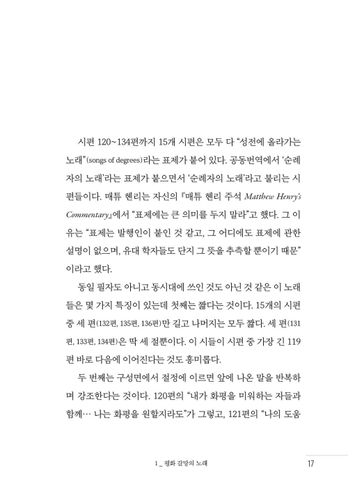 저자는 오랜 시간 목회 현장에서 시편을 깊이 묵상하면서 다양한 방법으로 이 메시지를 연구하고 그 열매들을 설교해 오신 분입니다. 저자의 글에서 나는 생명력과 진정성이 넘쳐나는 느낌을 받습니다. 이 책은 단순히 시편을 분석하고 해설하는 것을 넘어, 순례자의 삶이라는 거대한 주제를 통해 시편의 노래들을 오늘날 매일의 삶의 현장으로 끌어들입니다.