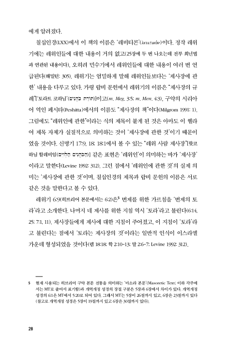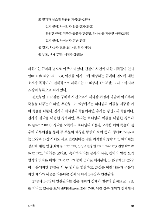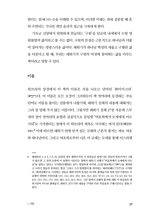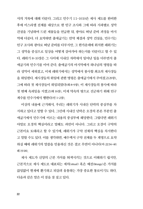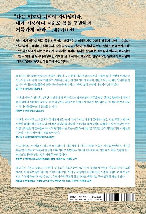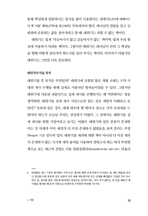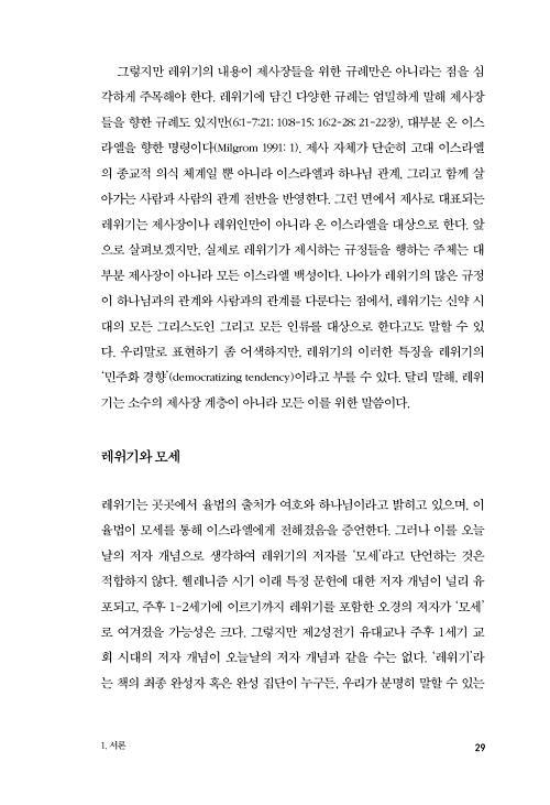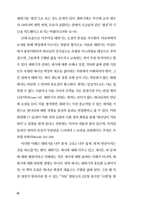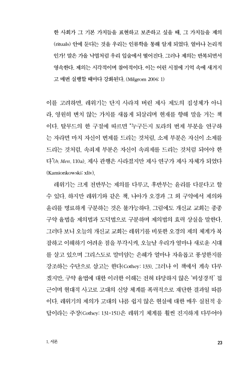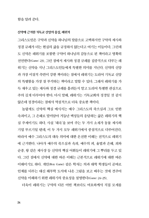 - 역사적 맥락 속에서 레위기 본문의 의미와 의도를 살피는 해석서
