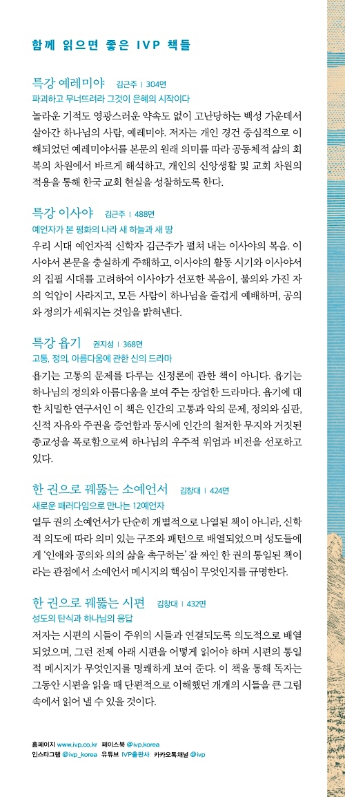 만들어진 책이다. 이 책은 그 시기 사람들의 사고방식과 문화, 세계관을 통해 하나님과 그 백성 이스라엘의 관계를