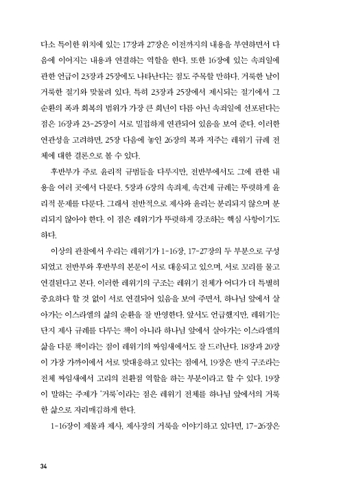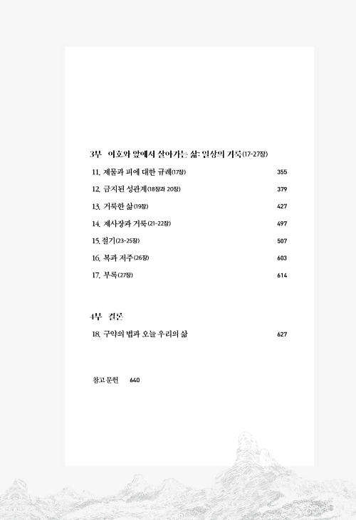 - 막연한 제사나 규례와 법규가 아닌 일상을 거룩하게 살게 하는 안내서