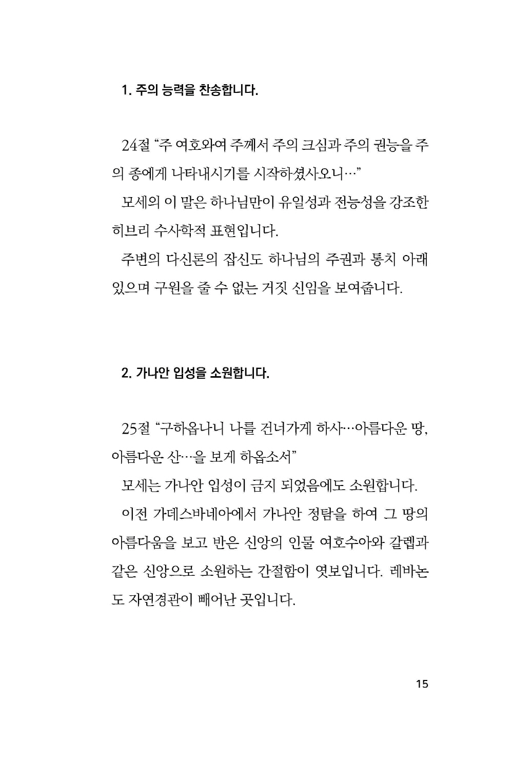 신명기의 총 주제는 신 6:5 “너는 마음을 다하고 뜻을 다하고 힘을 다하여 네 하나님 여호와를 사랑하라”입니다. 이 말씀이 신명기서 전체 내용에 뼈대를 이루고 있습니다. 오늘날 이 시대를 살아가는 성도들도 “오직 하나님만 사랑하는” 참신앙으로 사는 것이 되어야 합니다. 하나님을 믿노라 하면서도 여전히 세상적, 육신적, 부귀영화적으로 살면서 세속에 물들어 산다면 하나님의 영광을 가리우는 불신앙 되어지는 것입니다. 오직 하나님만 사랑하는 은혜가 있기를 소원합니다.