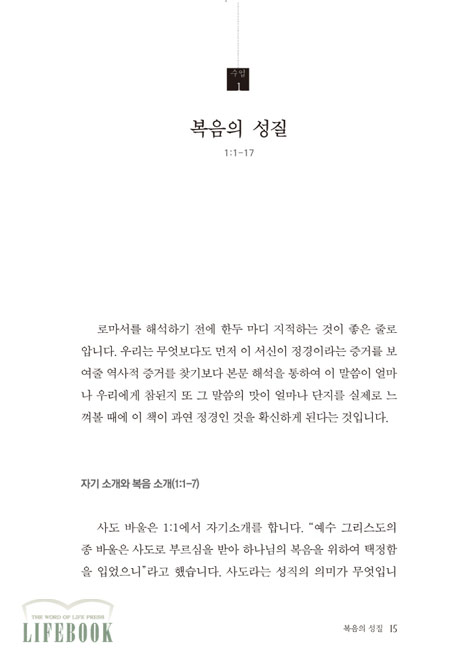 이 책은 로마서의 각 구절구절을 장황하게 해설하여 놓은 책이 아닙니다. 이 책은 로마서를 읽어가면서 그 속에서 우리가 꼭 알아야 할