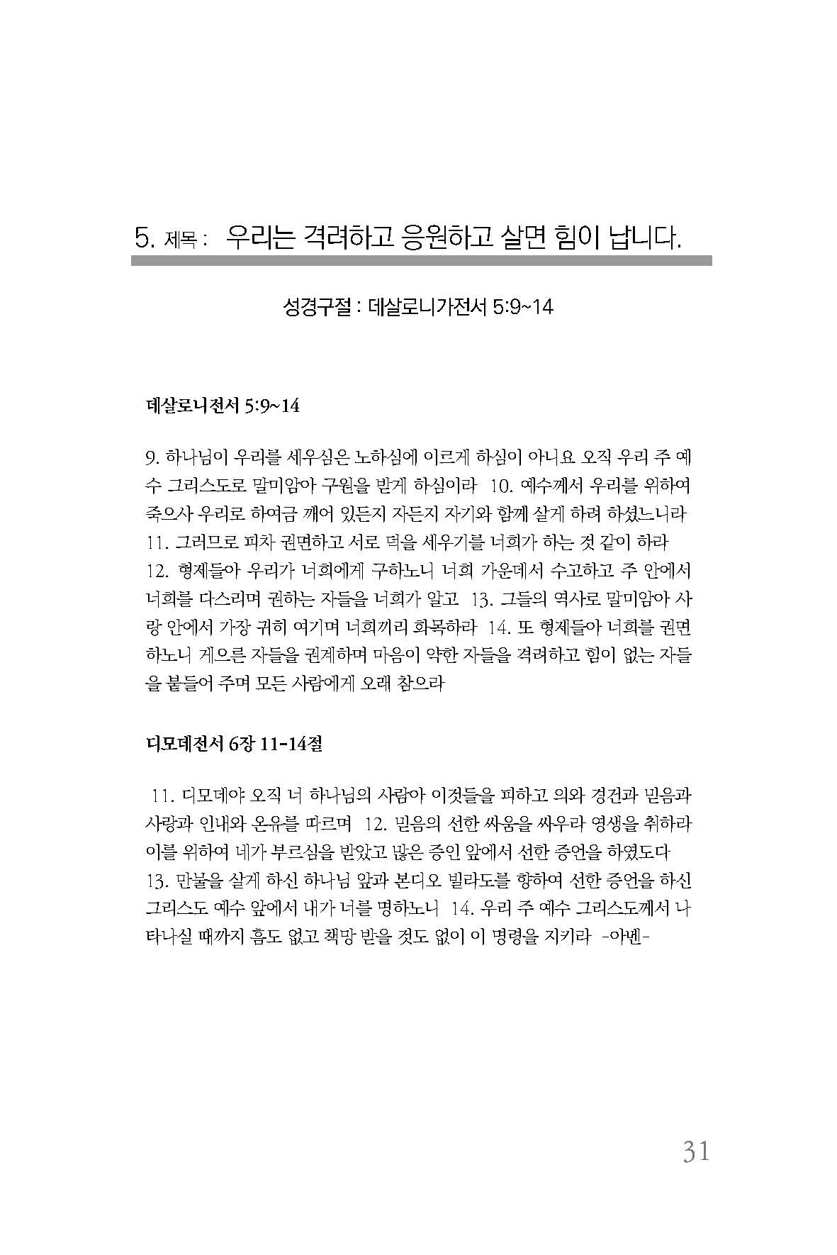 5. 제목 : 우리는 격려하고 응원하고 살면 힘이 납니다. 31