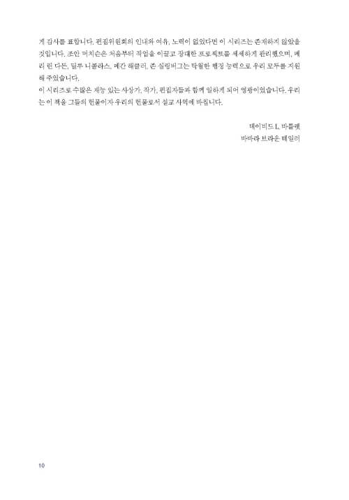 도 있다. 잘 알려진 이름도 있지만 새로운 필자들도 많다. 이러한 다양성으로 인해 이 시리즈는 진정 독특한 자원이 된다.” -Sharing the Practice
