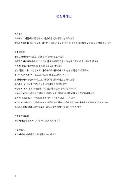 ★ “이 책에 참여한 집필자들의 범위는 매우 넓고 다양하다. 복음주의자부터 가톨릭 신학자에 이르기까지, 진보와 보수를 아우른다. 학계 인사도, 현장 목회자