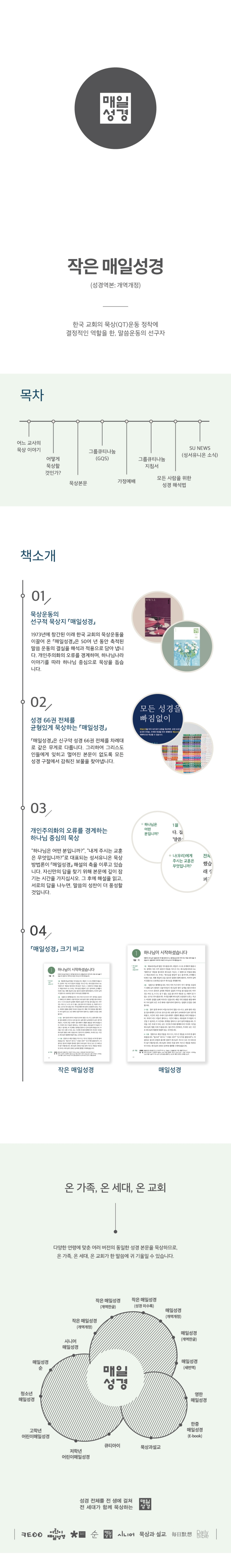 • 매일성경은 모든 연령의 그리스도인을 대상으로 눈높이를 맞춘 매일성경을 제공합니다. 유아, 어린이, 청소년, 청년, 성인, 시니어를 위한 매일성경이 모두 준비되어 있습니다.