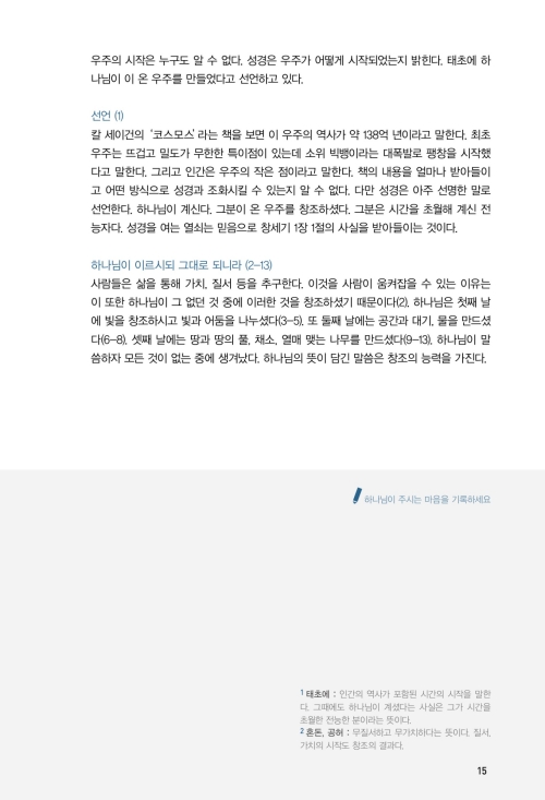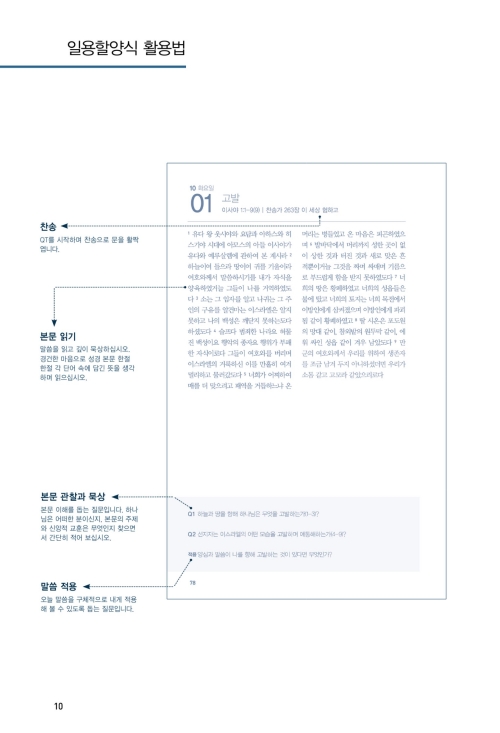 말씀을 읽고 깊이 묵상하십시오. 경건한 마음으로 성경 본문 한 절, 한 절 각 단어 속에 담긴 뜻을 생각하며 읽으십시오.