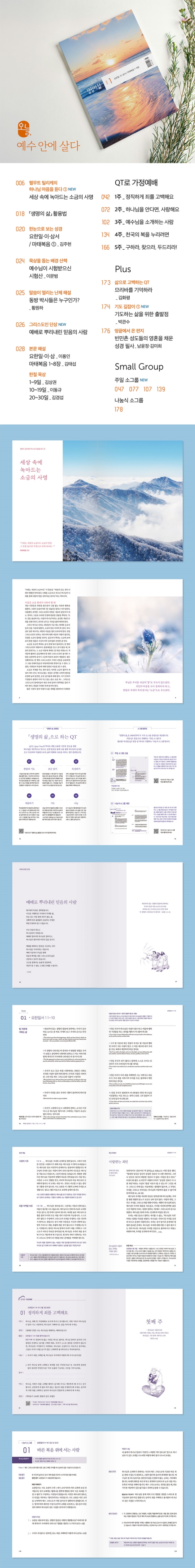 생명의 삶은 한국 교회의 말씀 묵상을 이끌어 온 대표적인 QT지입니다. 하루하루, 하나님이 주시는 말씀을 깨달아 나가는 성도들의 삶에 은혜를 끼치고, 묵상과 나눔을 통해 하나님이 우리에게 주시는 한없는 사랑을 느끼고, 더불어 크리스천의 변화와 영성 회복을 통해 사회를 변화시키는 원동력이 되기 위해 오늘도 기도하며 「생명의 삶」을 만들어 갑니다. 개역개정판은 한국교회 15개 교단이 공식 사용에 동참한 성경 본문입니다.