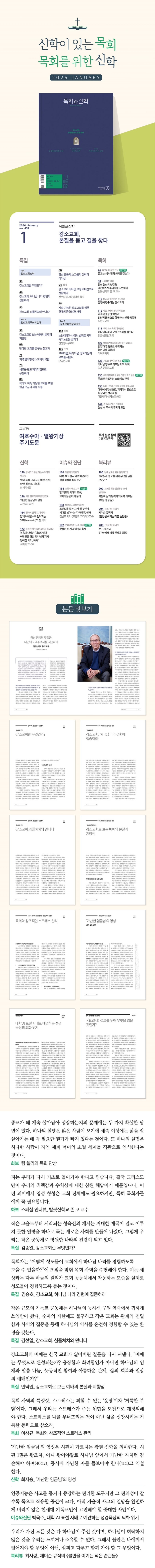 신학이 있는 목회, 목회를 위한 신학을 추구하는 목회 전문 월간지입니다. 신학 이론과 목회 현장을 연결하고 교회가 건강하고 균형 잡힌 성장에 이를 수 있도록 방향을 제시하고 자료를 제공합니다. 부록 '그말씀'은 설교를 돕는 성경 연구지로서 성경과 설교 주제에 대한 충실한 주해와 설교 작성의 이론과 실제를 제공합니다.