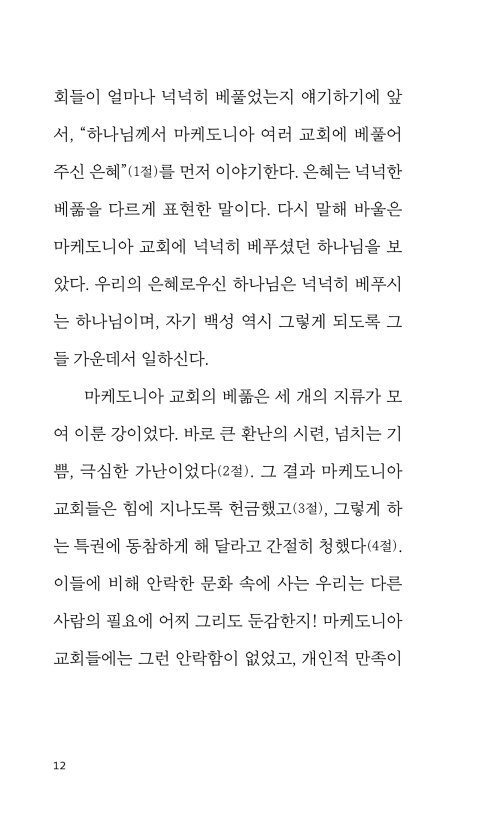 진정으로 그리스도인다운 헌금을 했다면, 사람들은 헌금을 한 우리에게 감사할 뿐 아니라, 하나님께도 감사할 것이다. 그리고 아들을 선물로 주신 것에서 절정에 이르는 그분의 말할 수 없는 은혜를 염두에 두고, 그들을 향한 우리의 선물을 바라볼 것이다.