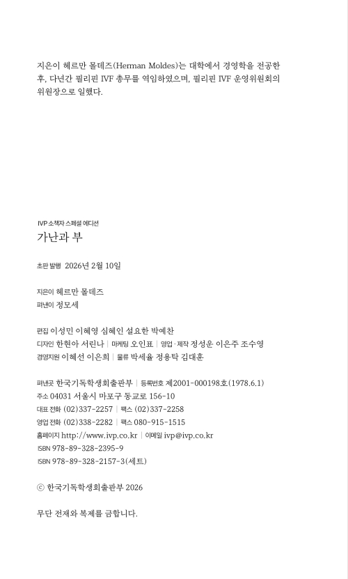 『가난과 부』에서 헤르만 몰데즈는 현실에 팽배한 빈부 격차 앞에서 그리스도인의 반응과 행동을 촉구한다. 가난과 부의 문제에 대한 성경적 관점이 무엇인지, 가난이 불의한 사회 구조와 어떻게 연결되어 있는지를 살펴보고, 가난한 자의 편이 되어 주라는 성경의 명령을 따르기 위해 그리스도인과 공동체가 어떤 삶을 살아가야 하는지 그 구체적인 대안을 제시한다.