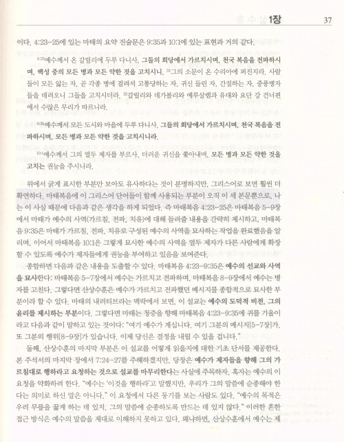 "성경읽기에서 제일 난코스는 본문의 실천적 의미를 찾는 작업이다. 본문이 과거에 지녔던 의미를 확인해야 하고, 그 의미가 가리키응 영적, 실존적 현실을 발견해야 하며, 그리고 그것이 어떤 식으로 오늘 우리의 현실과 교섭하는지 말할 수 있어야 한다. 그런 점에서 이 주석은 흥미롭다. 매 구절마다 본문에 귀를 기울이라고, 우리가 들은 바를 설명하라고, 그리고 이 깨달음을 독자 자신의 삶 속에서 살아내라고 다그친다. 견실한 주해와 신학적 깊이, 그리고 실천적 감수성을 갖춘 베테랑 학자의 안내를 따가라면, 오래 전 산에서 외치시던 예수의 음성이 오늘 우리의 삶 속에서 한결 깊은 울림과 도전으로 다가온다. 목회자와 성도들 모두에게 큰 유익이 될 것이다."