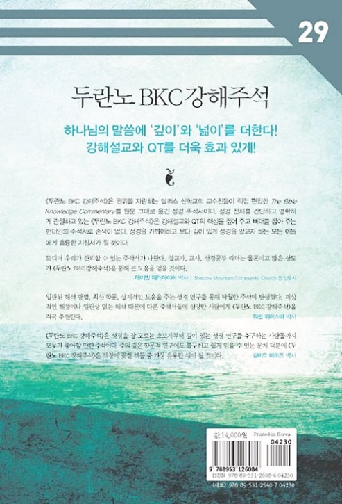 이다. 깊이 있는 학문적 연구에도 불구하고 쉽게 읽을 수 있는 문체 덕분에 이 『두란노 BKC 강해주석』은 책장에 꽂힌 책들 중