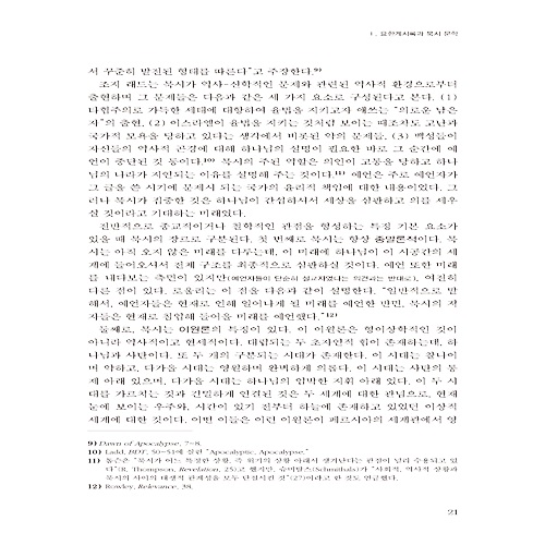 로버트 마운스의 이 요한계시록 주석이 처음 출간되었을 때, 이 책은 종말론에 대한 표준 해설로 찬사를 받았다. 마운스는 NIV와 Nestle-Aland 본문을 바탕으로 한 이 개정판에서 요한계시록에 대해 20년 이상 발전시킨 자신의 생각을 반영하고, 자신의 작품을 최근의 논의에 맞게 수정하고 확장했다. 초판에서와 같이, 개정판에서도 마운스는 다양한 접근의 해석과 묵시 문학에 대한 전통적인 접근을 성실하게 다루고 있다. 마운스는 극단적인 문자주의와 고도로 상상력이 풍부한 주관주의 사이에서 균형을 잡고 헤쳐 나간다. 그럼으로써 마운스는 고대의 본문이 서신의 수신자인 1세기 교회들과, 또 동시에 여전히 오늘날 우리에게도 말할 수 있다고 믿는다.