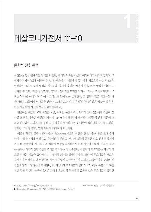 설교자가 반드시 알아야 할 전후 문맥을 잘 연구해놓은 것과 본문의 흐름을 명확하게 알 수 있도록 도표로 본문을 배열해놓은 점 그리고 헬라어에 능숙하지 않아도 충분히 의미를 이해할 수 있도록 배려한 점이 돋보인다. 만일 어느 설교자가 현존하는 우리말 주석 가운데 오직 한 권만 구입해야 한다면 나는 이 주석 시리즈가 될 것이라 확신한다. 신약을 깊고 올바르게 설교하려는 모든 설교자에게 이 시리즈를 추천한다. 설교자라면 반드시 서재에 비치하고 두고두고 보아야 할 주석이다.