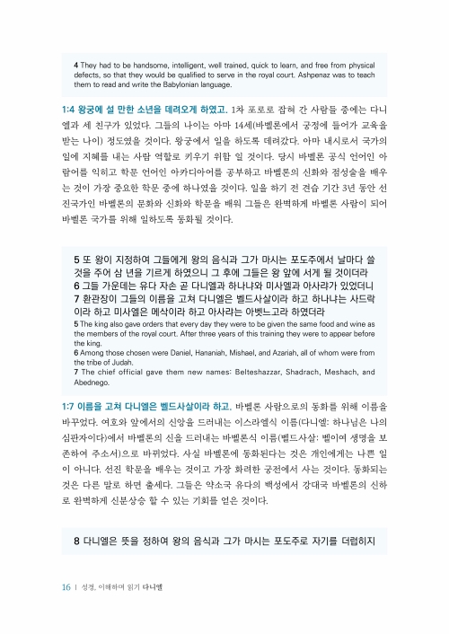 중요한 것은 바벨론 포로라는 가장 처참한 환경이 신앙적으로 가장 훌륭한 시대가 된다는 사실이다. 바벨론 포로기를 잘 보낸 이후 메시야이신 예수님이 오시기까지 신앙을 잘 보존하고 전수하게 된다. 다니엘서에서는 그렇게 신앙이 보존되고 전수된 과정을 엿볼 수 있다.