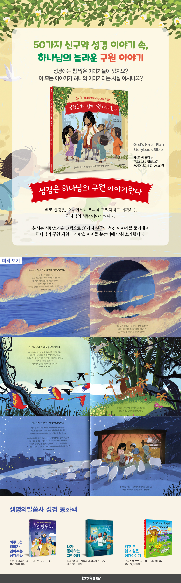- 하나님의 놀라운 구원 계획과 위대한 사랑을 아이들 눈높이에 맞춰 소개하고 있답니다.