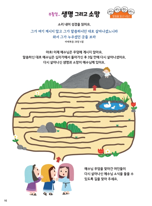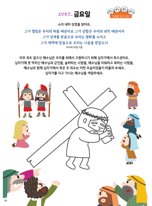 사순절 기간 동안 말씀 읽기와 다양한 활동으로 부활의 예수님을 생각해요. 아이는 믿음으로 한 뼘 더 자라날 거예요.