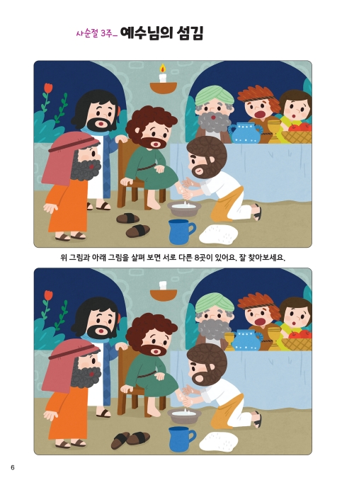 4주간의 말씀은 다른 그림 찾기로 세심하게 들여다보면서 말씀의 장면을 기억하고, 다시 자신에게 두드리는 말씀으로 이어지도록 작은 활동으로 마무리했답니다.